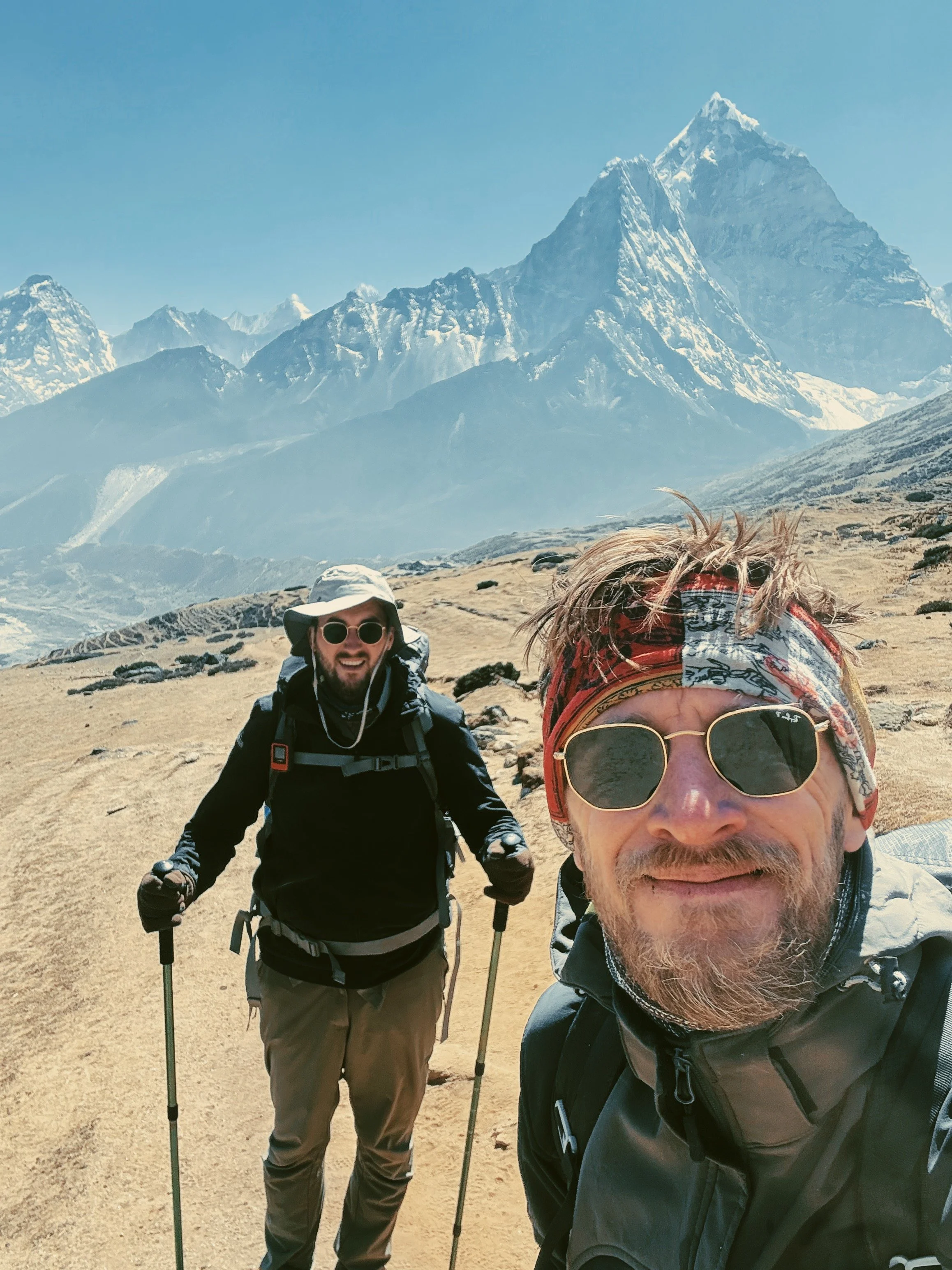 Nima in Namche Bazar had told me about a coffee shop owned by one of his cousins. All Sherpas are cousins somehow. The owner was kind, curious and sharp. Mid conversation an ageing white guy walked in. He seemed well known. A Scottish flag on his phone cover caught my eye and I joked about a jock being far from home. The joke opened a door and we talked for five hours.