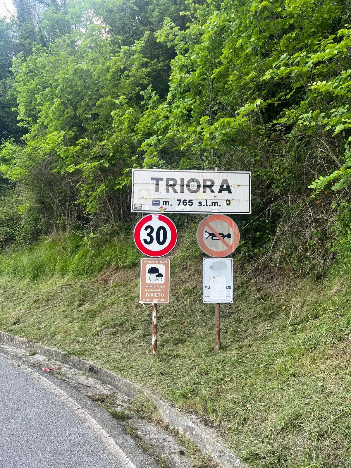 With an average of 170 km per hour burning through my fuel budget for the day, I make it to Italy! Instant relief as I sip on my espresso doppio on the side of the road, sun burning my skin. Made it, it can start now, but it’s 6 pm, I don’t know where I’m going to sleep or eat. I decide to get off the motorway and head for the mountains to find a small town where I can rest. I end up in Triora, a town renowned for its historical connection to witchery, ominous. I can’t find a place and start panicking. I have all my camping gear but I’m not psychologically ready to wild camp yet; the day has been emotional enough. I just don’t have the courage to find a wood block and sleep alone in my tent on the first night, especially since the only spot I found was behind a church in the witch village—too much for one night.