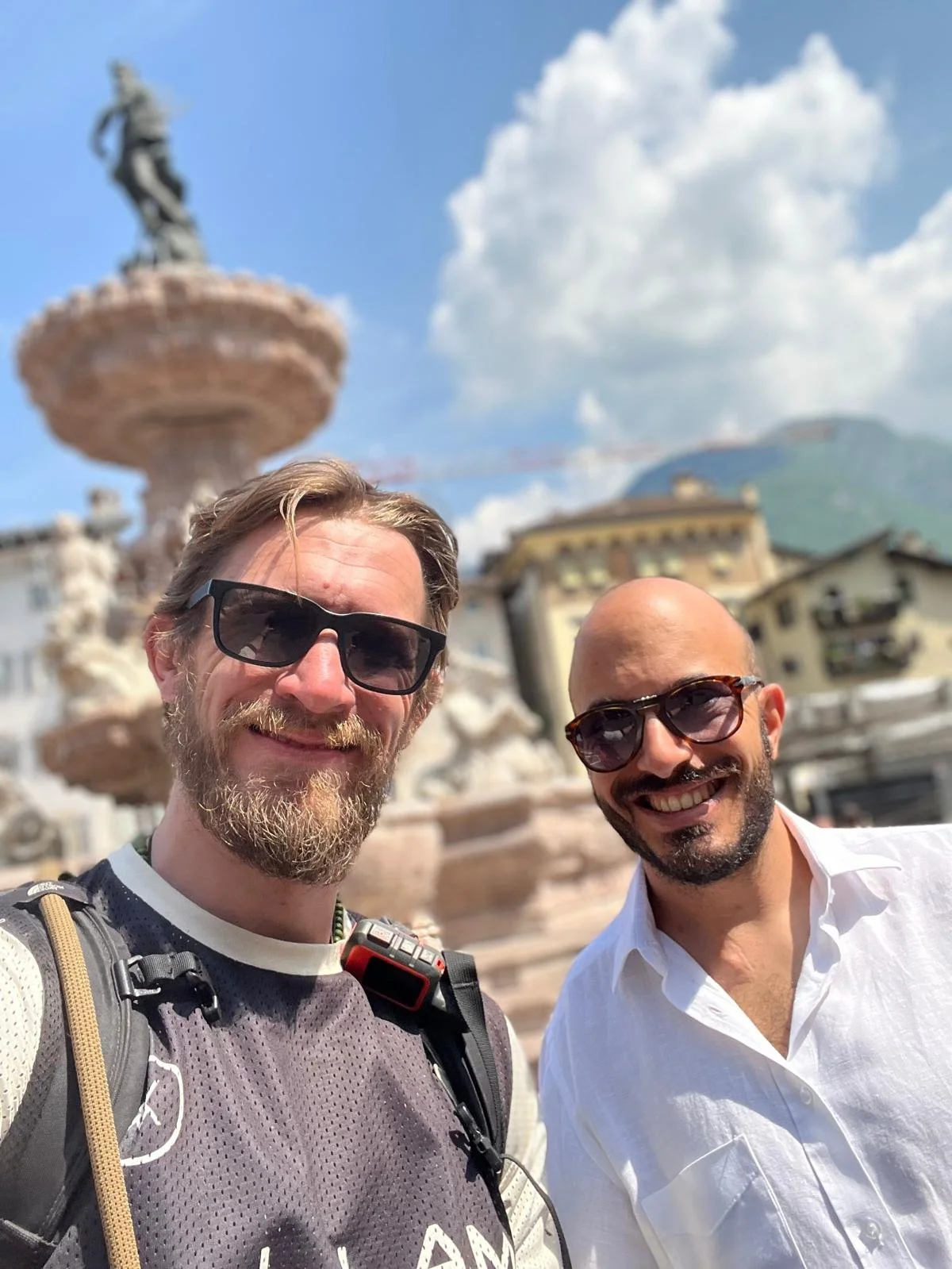 However, the clang of pots and pans doesn’t compare to the roar of pistons and combustible sprouting from Tara at 0600 the next morning as I tear out of the campsite to go see my good friend Mattia. I will keep it short on him, as short as his amputated arm. Because he deserves a lot more than the few words I will manage here. I met him in Colorado in 2023 as part of an event for the Invictus Foundation. At first, I found him a bit aloof and arrogant. But after I saw him one day getting to the top of a 4000m mountain ahead of the whole team through sheer determination and willpower, I had nothing left but admiration for the guy. Mattia sadly lost all function in his right arm after a serious motorcycle accident; he kept the arm for a while but finally decided to amputate it a few weeks before coming on this expedition. Not once did he complain or say a word about his amputation; he was the embodiment of stoicism (pun intended). So it was with great joy that I went to have coffee in Trento with this one-armed ex-military police officer. His disability clearly started before losing his arm, who joins the military police!!!!