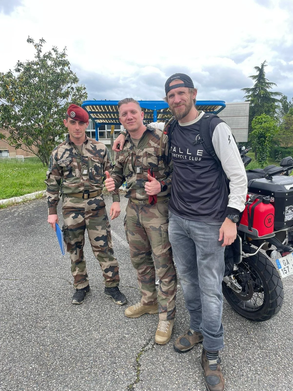 A few goodbyes to friends, chiefly my friend Julien who has been a stalwart friend throughout the planning of my exped and well before. At some of my worst moments he was there for me and in a sense saved my life without knowing it. I swing by his regiment to see him and say my goodbyes, he's there with another French army mate from Brazilian Jiu-Jitsu. Seeing them in uniforms is somewhat reassuring, and destabilising at the same time. Another symbolic goodbye takes place, I’m not just saying goodbye to my mates, it’s to my past life.