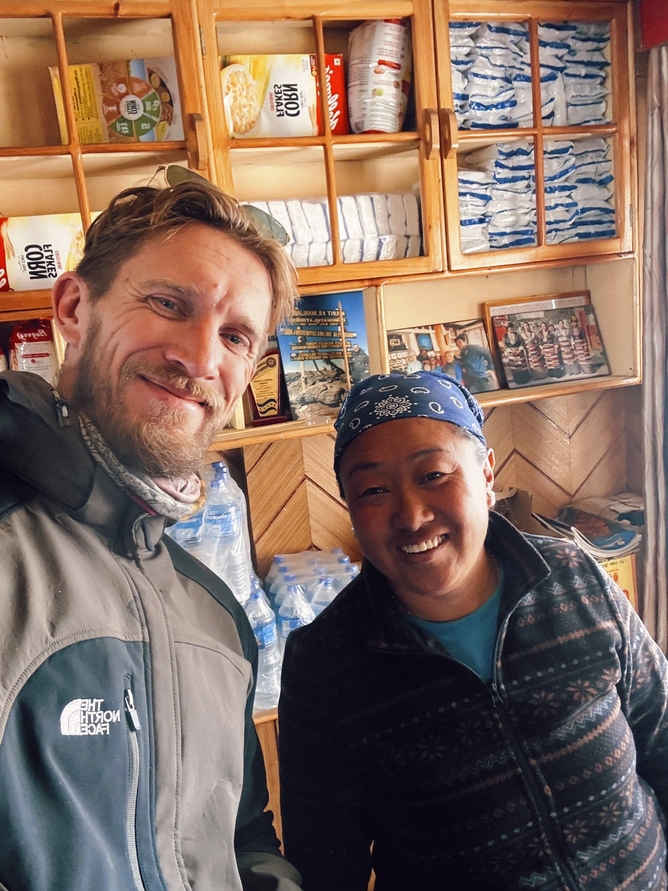 Dingboche was meant to be acclimatisation. Climb to 5000 metres, sleep low. I found shelter at Mima’s place, Nima’s aunt. Fierce, proud Sherpa woman in her forties with eyes like sharpened obsidian. Within minutes of talking she decided I would climb Lobuche East. She found me a guide, crampons, ropes, her husband’s down trousers, and a helmet. She laid the whole plan out like it was obvious. I would go to EBC with Alvaro, acclimatise, drop down fast, meet the guide, summit, run back to Namche in one day. Something inside me clicked into place. The ego that had been thrashing around finally went quiet. I felt at peace with staying by Alvaro’s side for now. Enough selfishness.